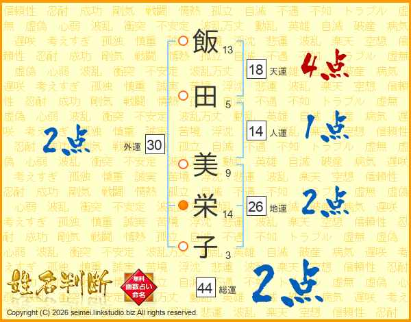 飯田美栄子さんの総運は44画の2点!