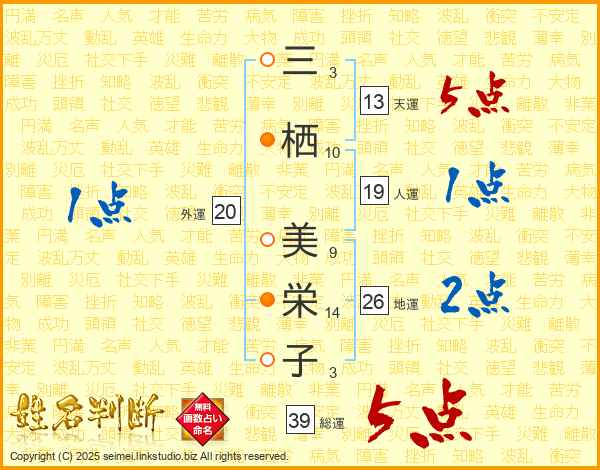 三(3画)栖(10画)  美(9画)栄(14画)子(3画)