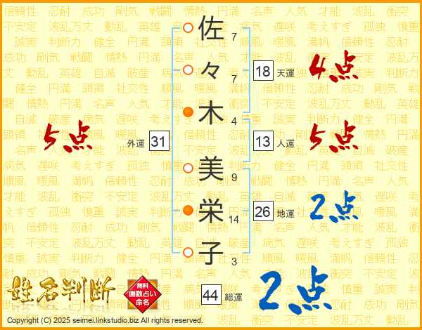 佐々木美栄子さんの総運は44画の2点!