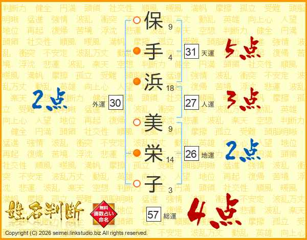 保手浜美栄子さんの総運は57画の4点!