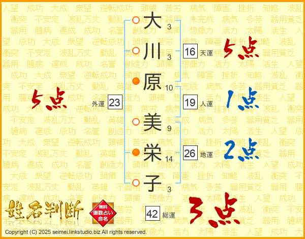 大川原美栄子さんの外運は23画の5点!
