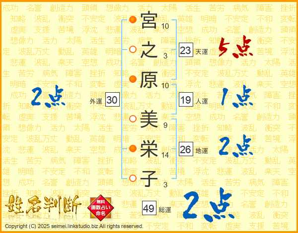 宮之原美栄子さんの総運は49画の2点!