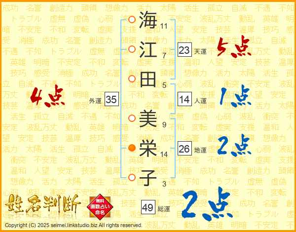 海江田美栄子さんの総運は49画の2点!