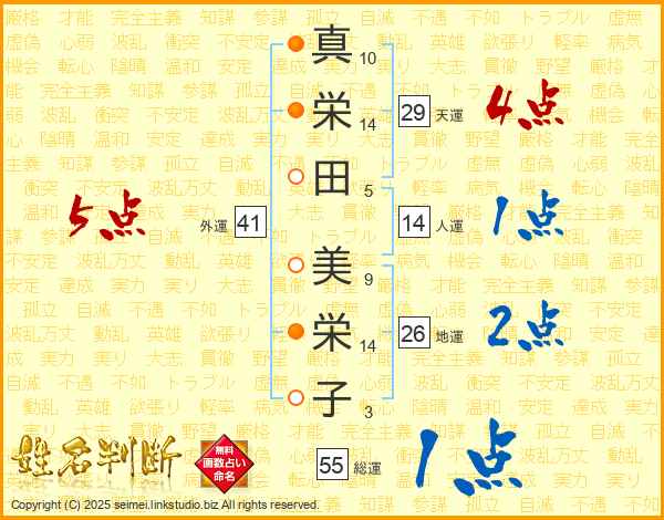 真栄田美栄子さんの外運は41画の5点!