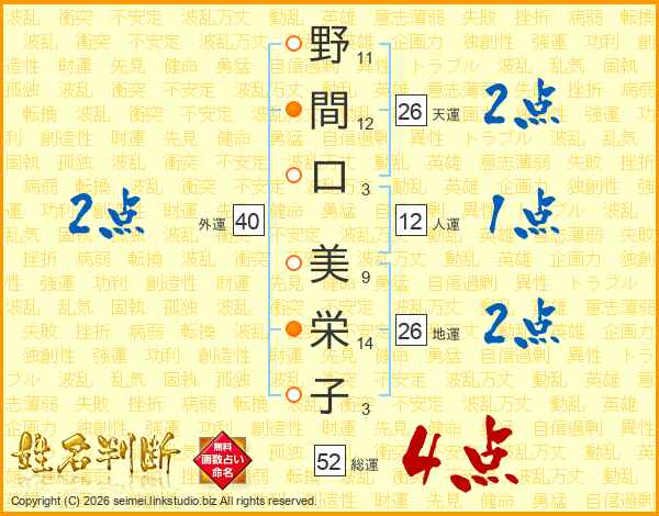 野間口美栄子さんの総運は52画の4点!