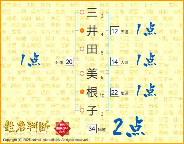 三井田美根子さんの総運は34画の2点!