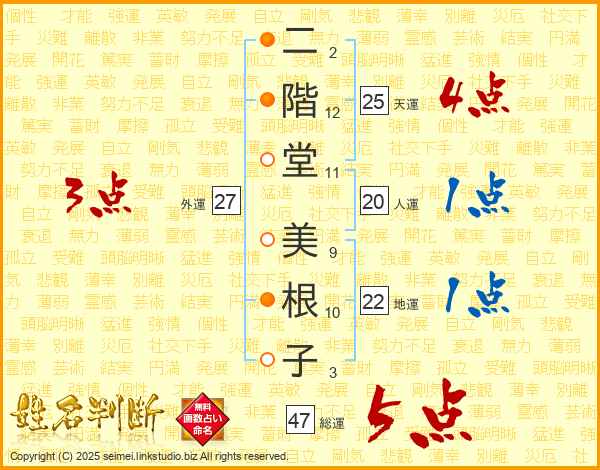 二階堂美根子さんの総運は47画の5点!