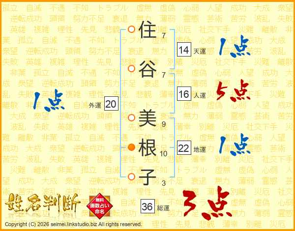 住谷美根子さんの天運は14画の1点!