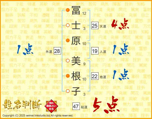 冨士原美根子さんの総運は47画の5点!