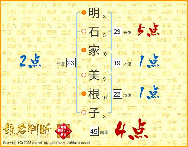 明石家美根子さんの総運は45画の4点!