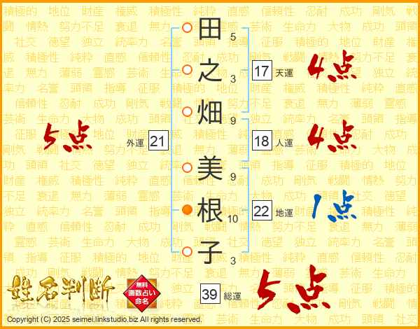 田之畑美根子さんの総運は39画の5点!
