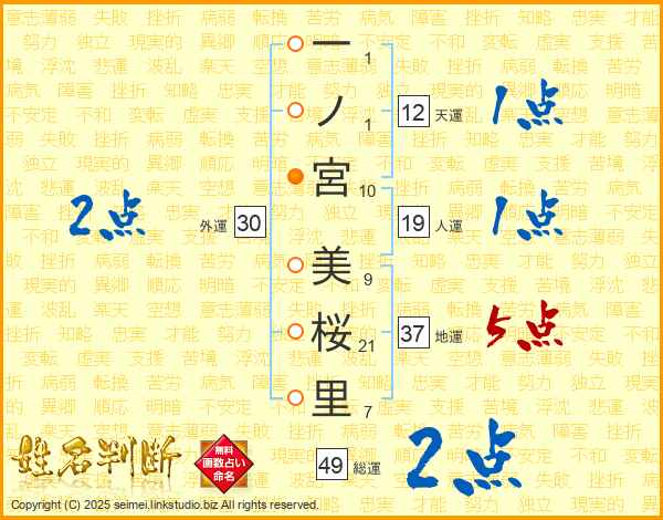 一ノ宮美桜里さんの地運は37画の5点!