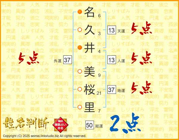名久井美桜里さんの外運は37画の5点!
