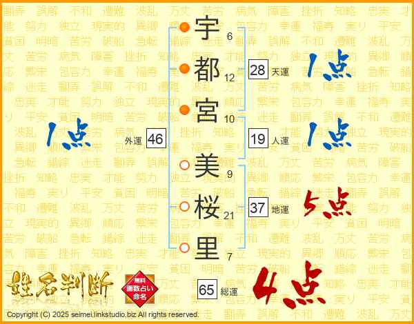 宇都宮美桜里さんの総運は65画の4点!