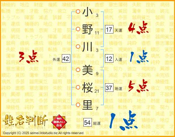 小野川美桜里さんの天運は17画の4点!