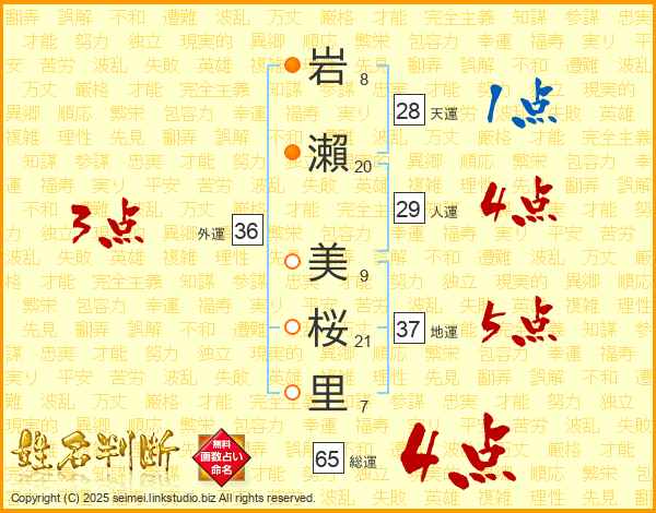 岩瀨美桜里さんの総運は65画の4点!