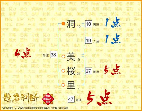洞美桜里さんの総運は47画の5点!