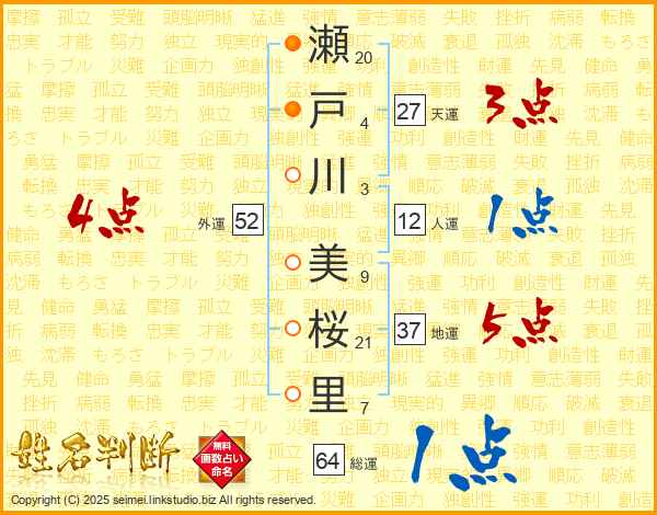 瀬戸川美桜里さんの地運は37画の5点!