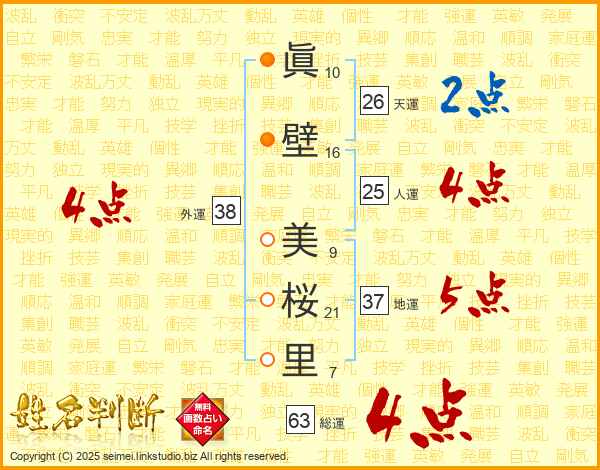 眞壁美桜里さんの総運は63画の4点!