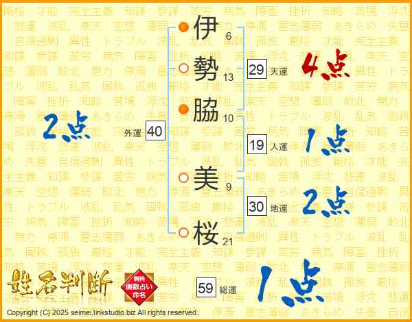 伊勢脇美桜さんの総運は59画の1点!
