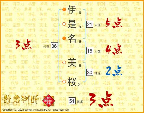 伊是名美桜さんの総運は51画の3点!