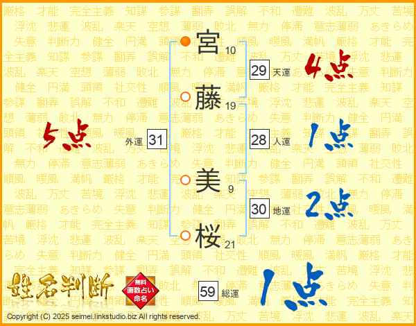 宮(10画)藤(19画) 美(9画)桜(21画)