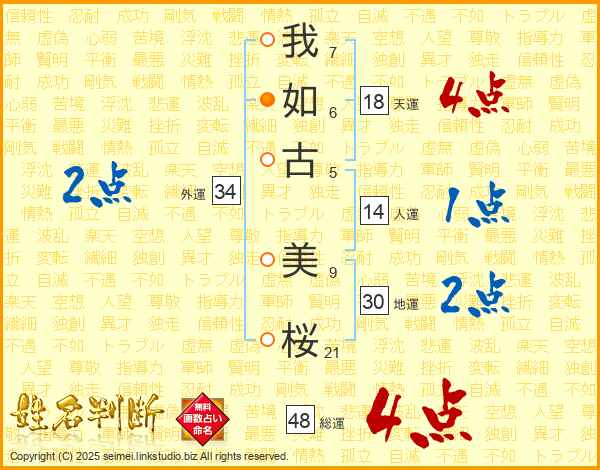 我(7画)如(6画)古(5画) 美(9画)桜(21画)