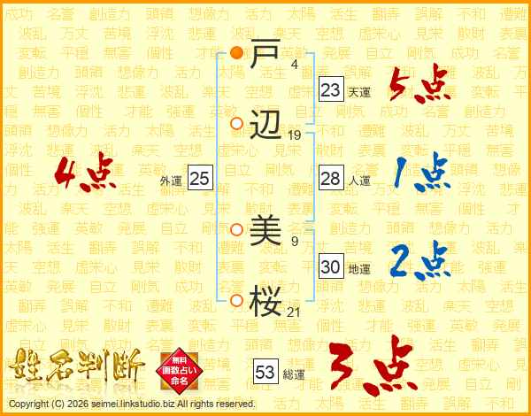 戸辺美桜さんの総運は53画の3点!