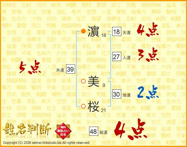 濵美桜さんの外運は39画の5点!