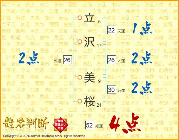 立(5画)沢(17画) 美(9画)桜(21画)