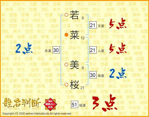 若菜美桜さんの総運は51画の3点!