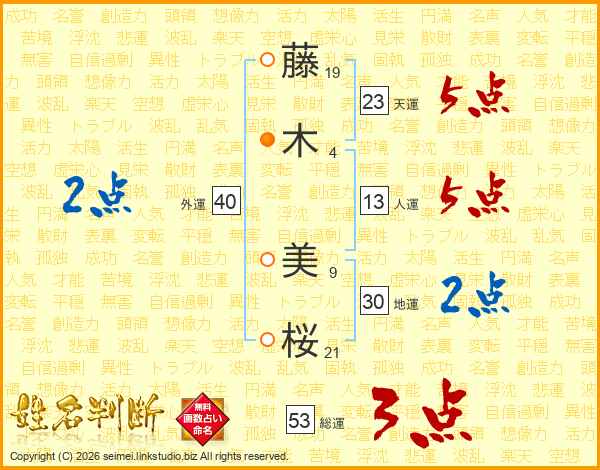藤(19画)木(4画) 美(9画)桜(21画)