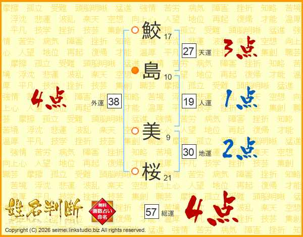 鮫(17画)島(10画) 美(9画)桜(21画)