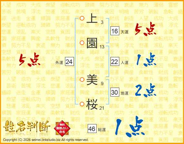 上園美桜さんの総運は46画の1点!