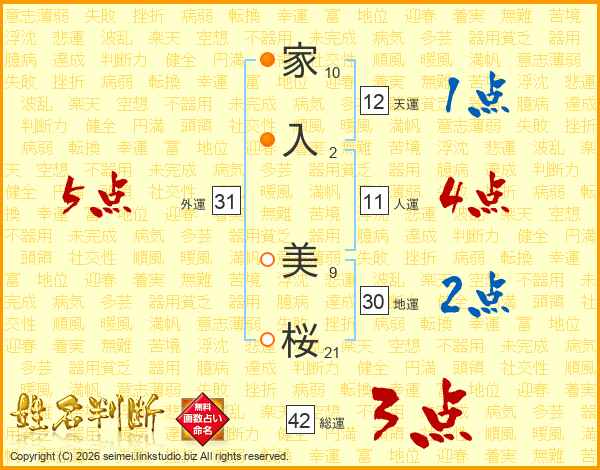 家入美桜さんの外運は31画の5点!