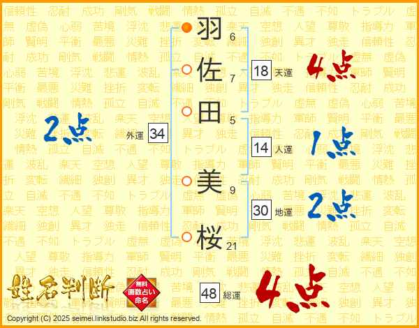 羽佐田美桜さんの総運は48画の4点!