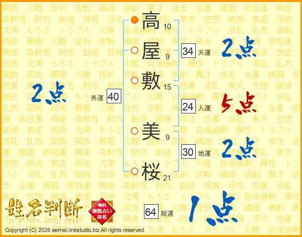 高屋敷美桜さんの総運は64画の1点!