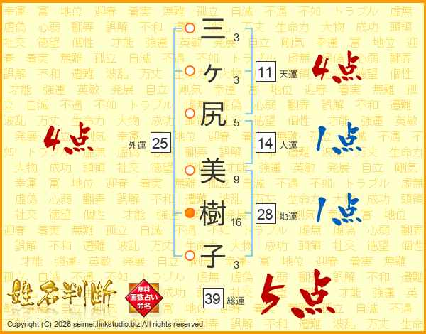三ヶ尻美樹子さんの総運は39画の5点!