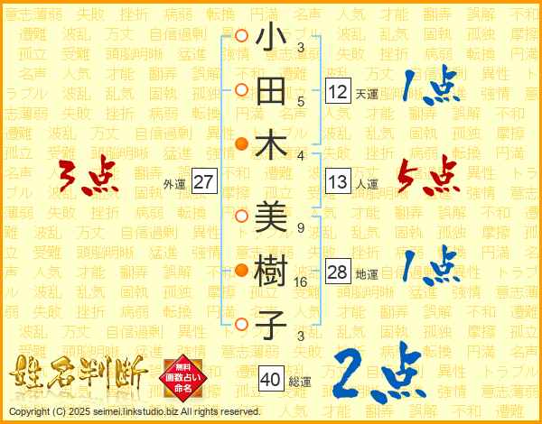 小田木美樹子さんの総運は40画の2点!