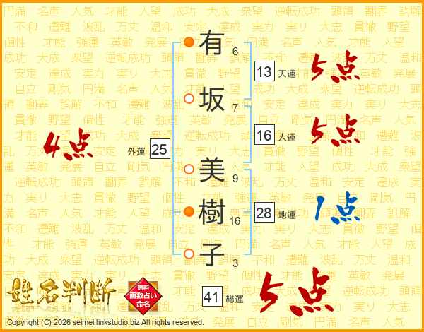 有坂美樹子さんの総運は41画の5点!