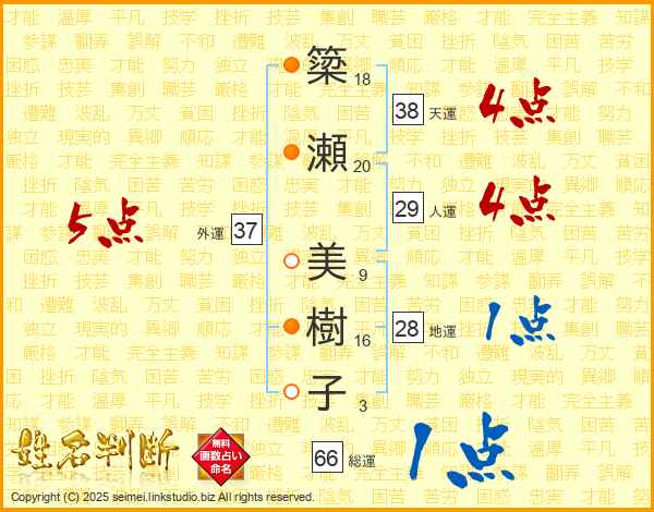 簗(18画)瀬(20画) 美(9画)樹(16画)子(3画)