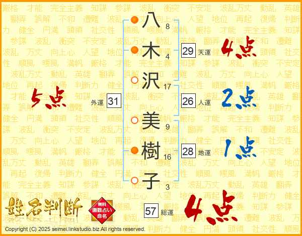 八木沢美樹子さんの総運は57画の4点!