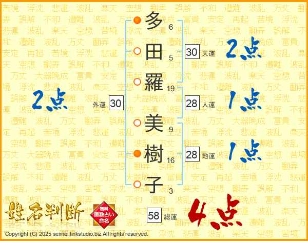 多田羅美樹子さんの総運は58画の4点!