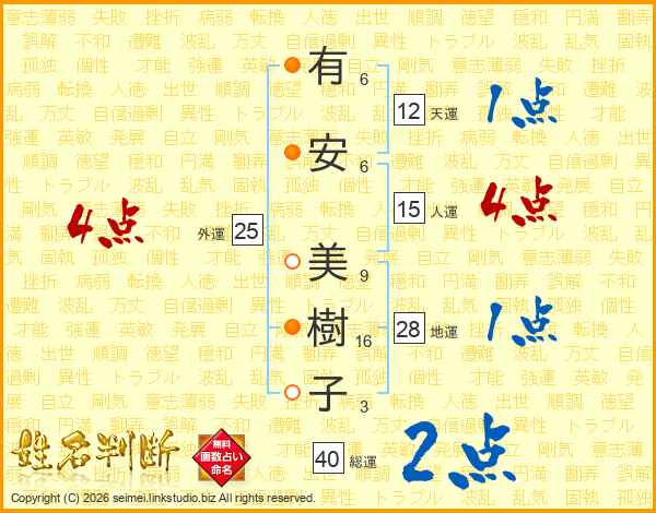 有安美樹子さんの総運は40画の2点!
