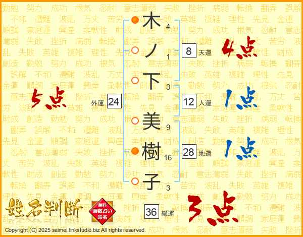 木ノ下美樹子さんの外運は24画の5点