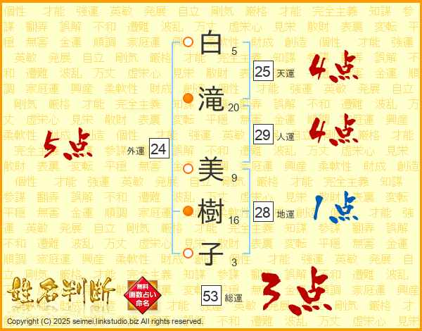 白滝美樹子さんの天運は25画の4点!