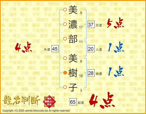 美(9画)濃(17画)部(11画) 美(9画)樹(16画)子(3画)