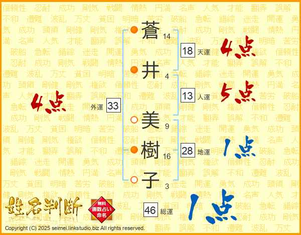 蒼井美樹子さんの外運は33画の4点