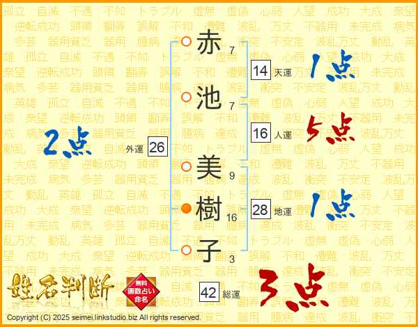 赤(7画)池(7画) 美(9画)樹(16画)子(3画)