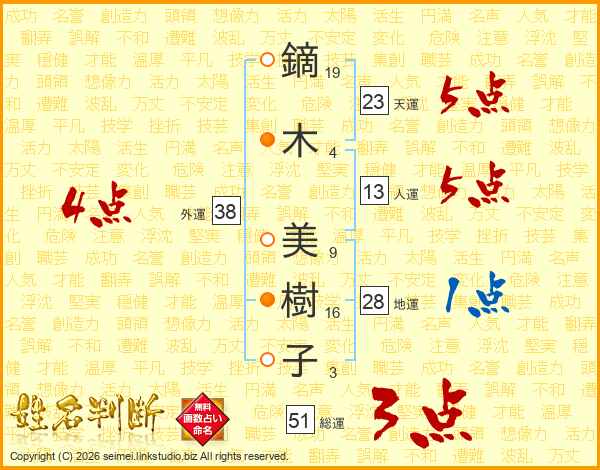 鏑(19画)木(4画) 美(9画)樹(16画)子(3画)